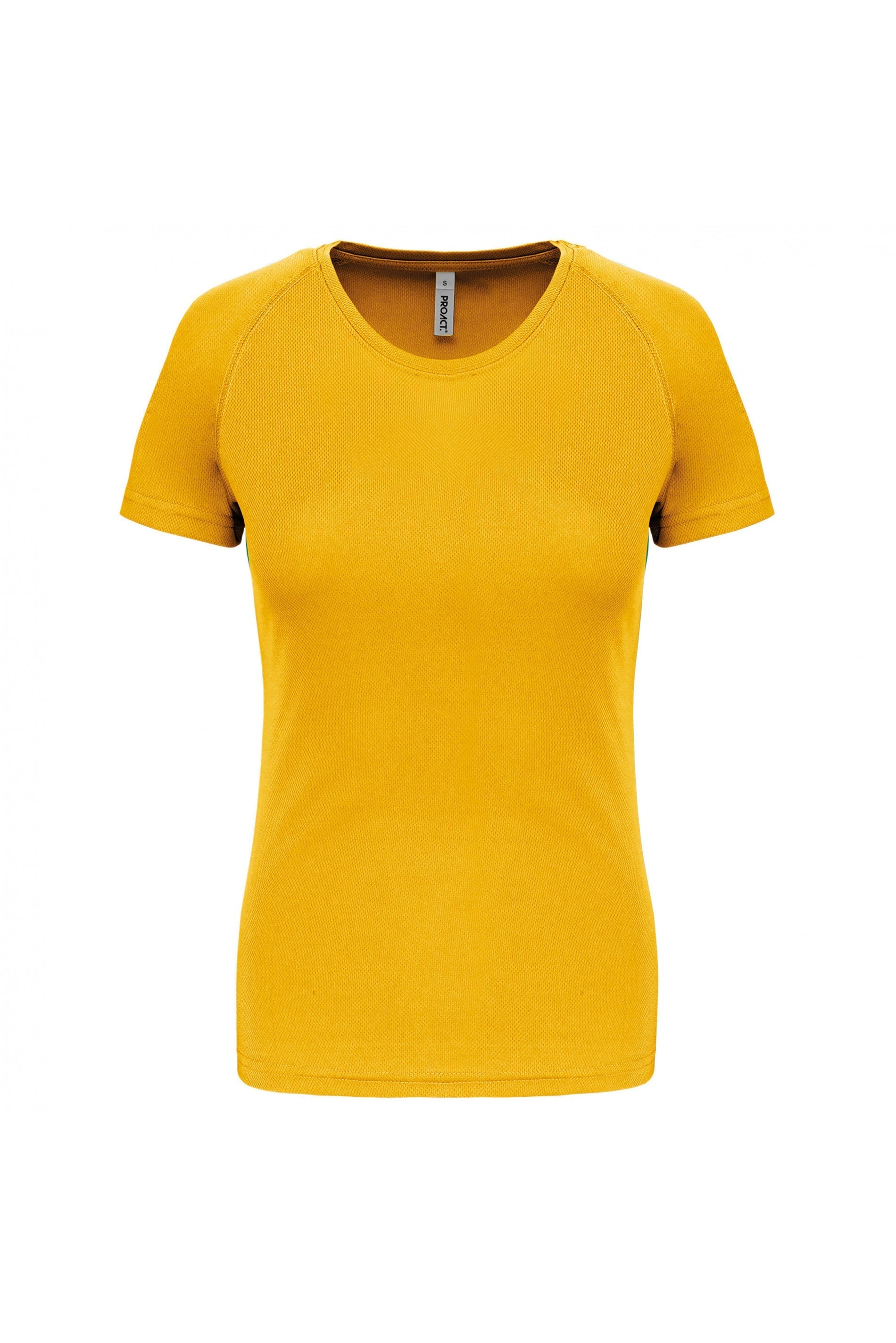 100% poliéster. Tecido leve e de secagem rápida. Manga raglan. Tapa-costuras. Acabamento com costura dupla.