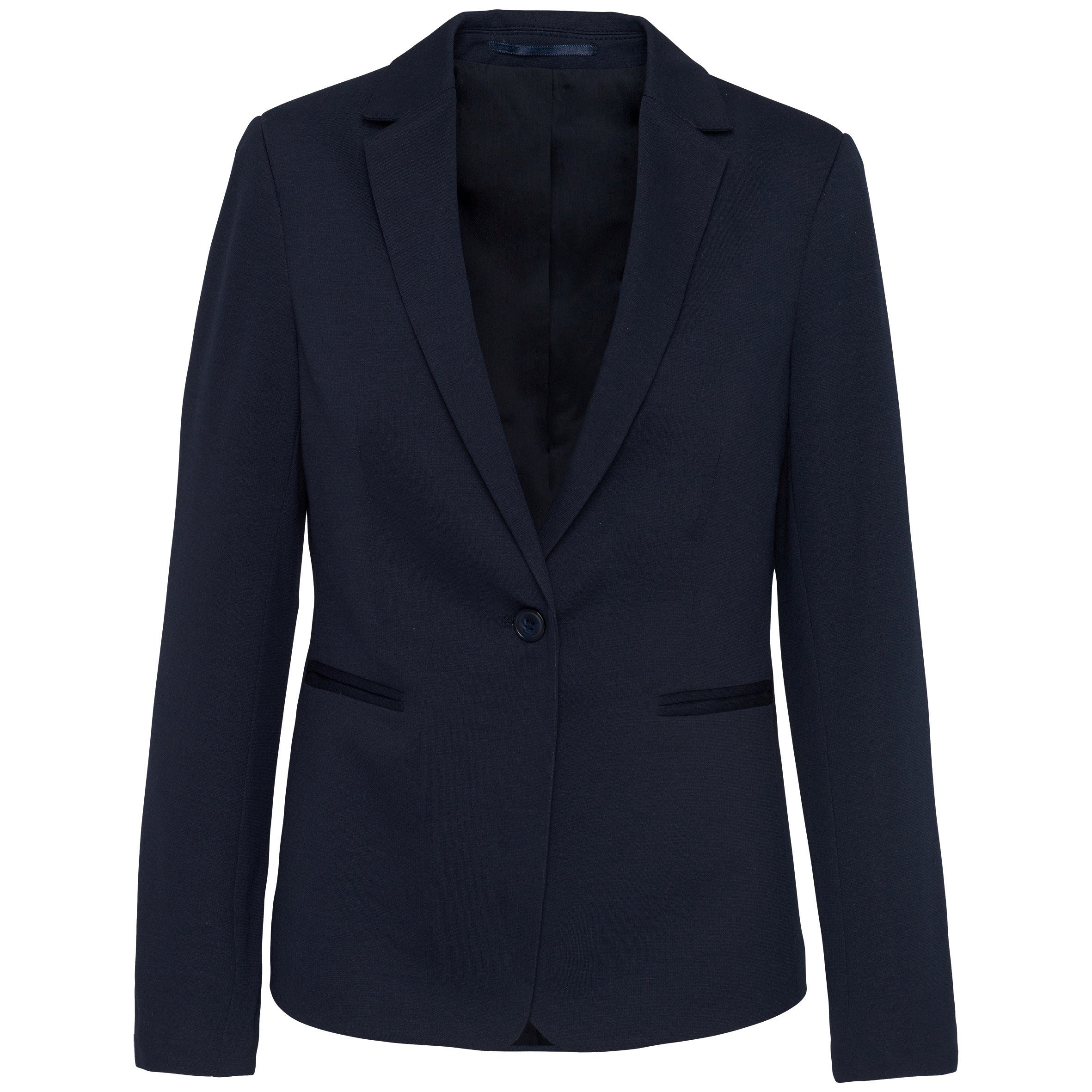Leve e confortável, este blazer de malha oferece a sofisticação de um blazer tradicional com o conforto de uma malha. Perfeito para um look casual de negócios.