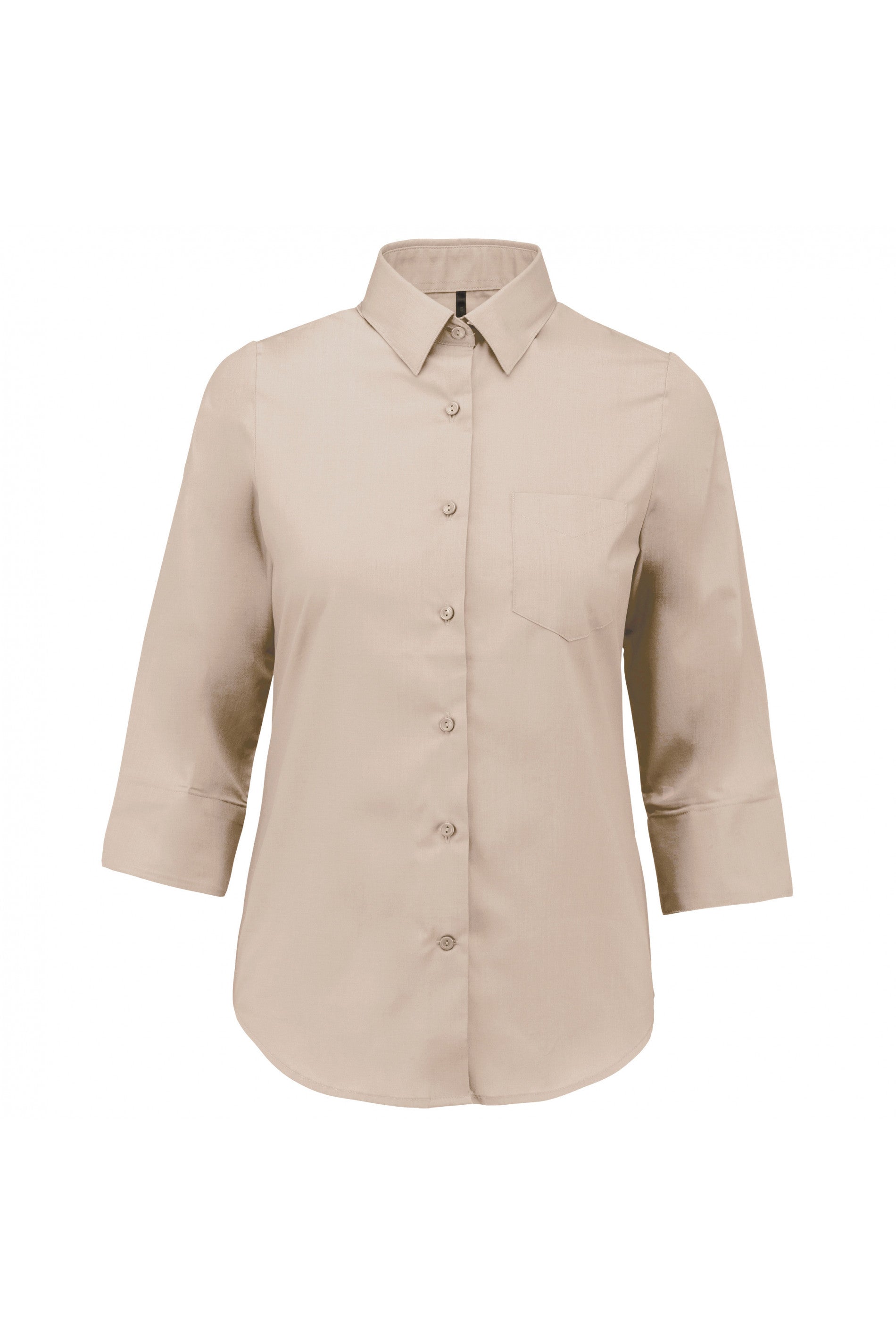 Confeção em polialgodão para um tratamento fácil. Resistência e estilo. Corte feminino com mangas 3/4. 65poliéster / 35% algodão popelina. Tratamento...
