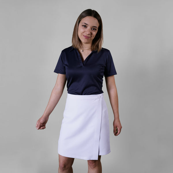 Um skort fabricado em microfibra, um tecido 100% poliéster (PES) que oferece uma combinação única de suavidade e durabilidade. Esta escolha de material garante uma peça de vestuário suave ao toque e resistente às exigências do sector da hotelaria. Uma alternativa confortável e elegante às saias tradicionais. Permite-lhe mover-se com facilidade, mantendo um aspeto profissional e sofisticado. O bolso falso nas costas é um pormenor elegante que acrescenta um toque de elegância e o fecho de correr e botão invisível na cor do tecido não só facilita a colocação e a remoção, como também contribui para o aspeto limpo e elegante. Disponível em três cores versáteis, permitindo-lhe escolher a opção que melhor se adapta ao seu estilo e preferências.