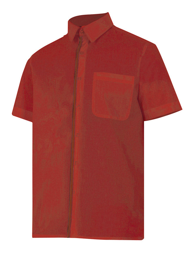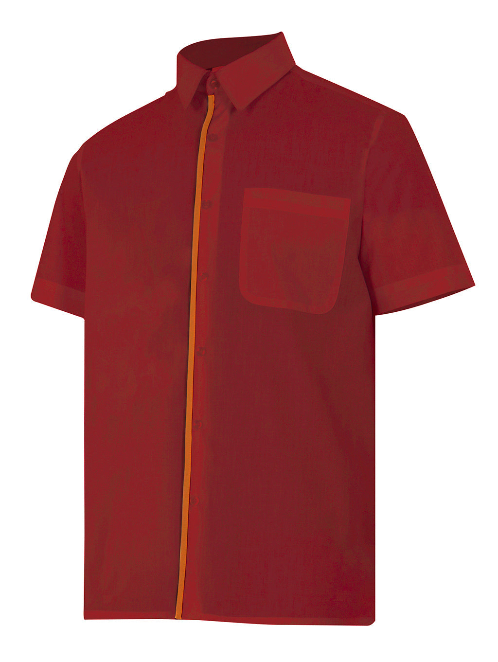 Camisa de manga curta. Abertura central com botões e um bolso de chapa no peito. Popeline. 65% poliéster - 35% algodão Gramagem 104 gr/m2 Dimensão