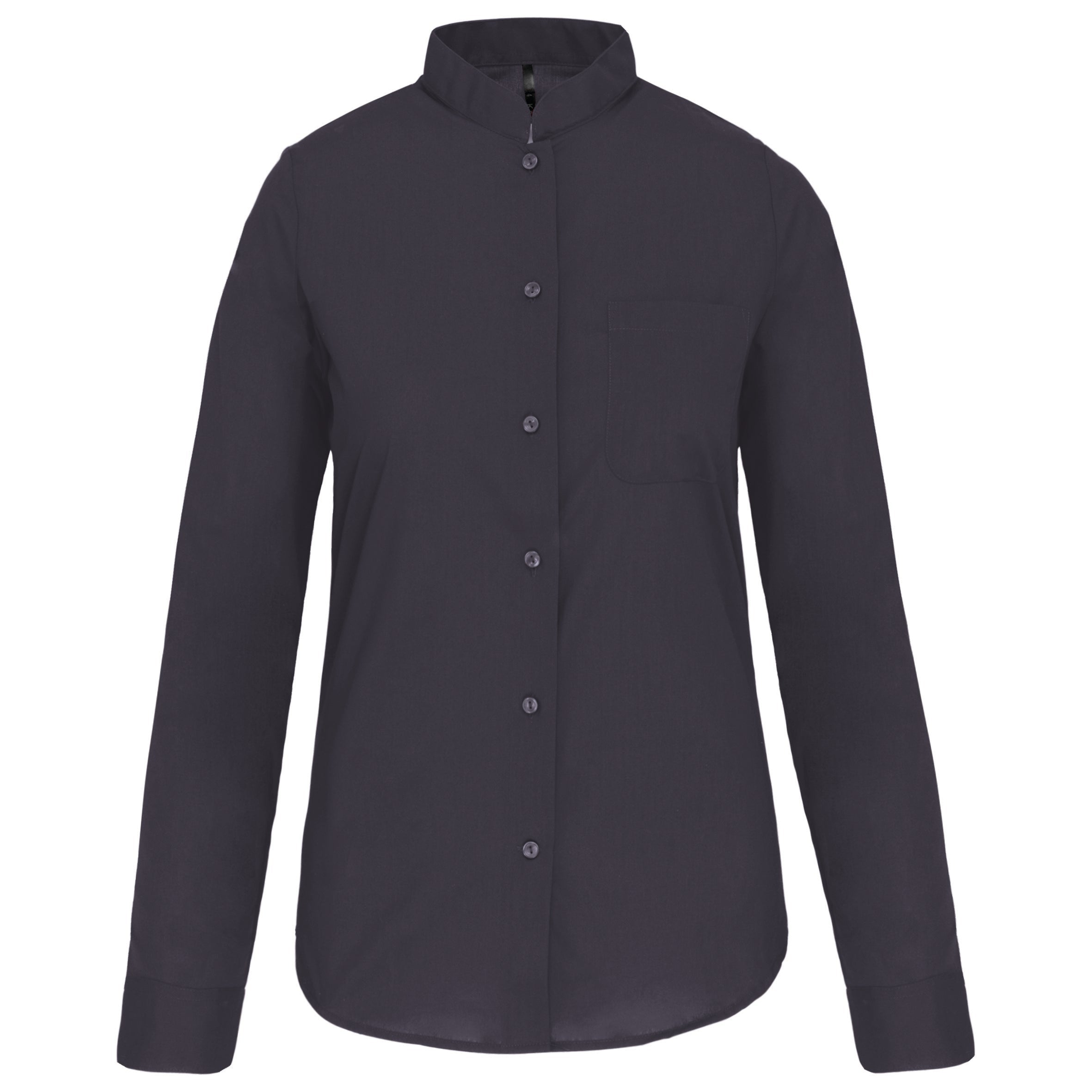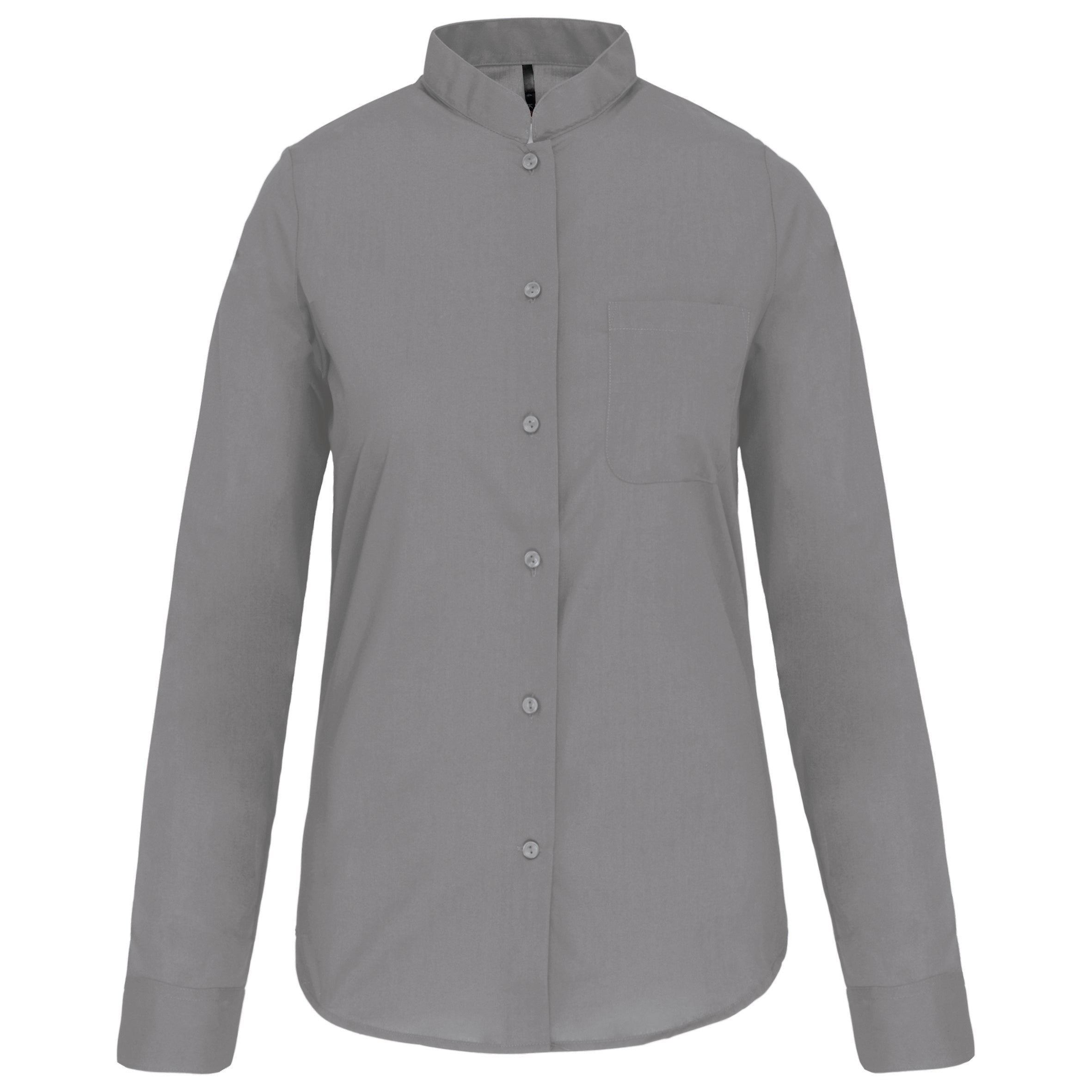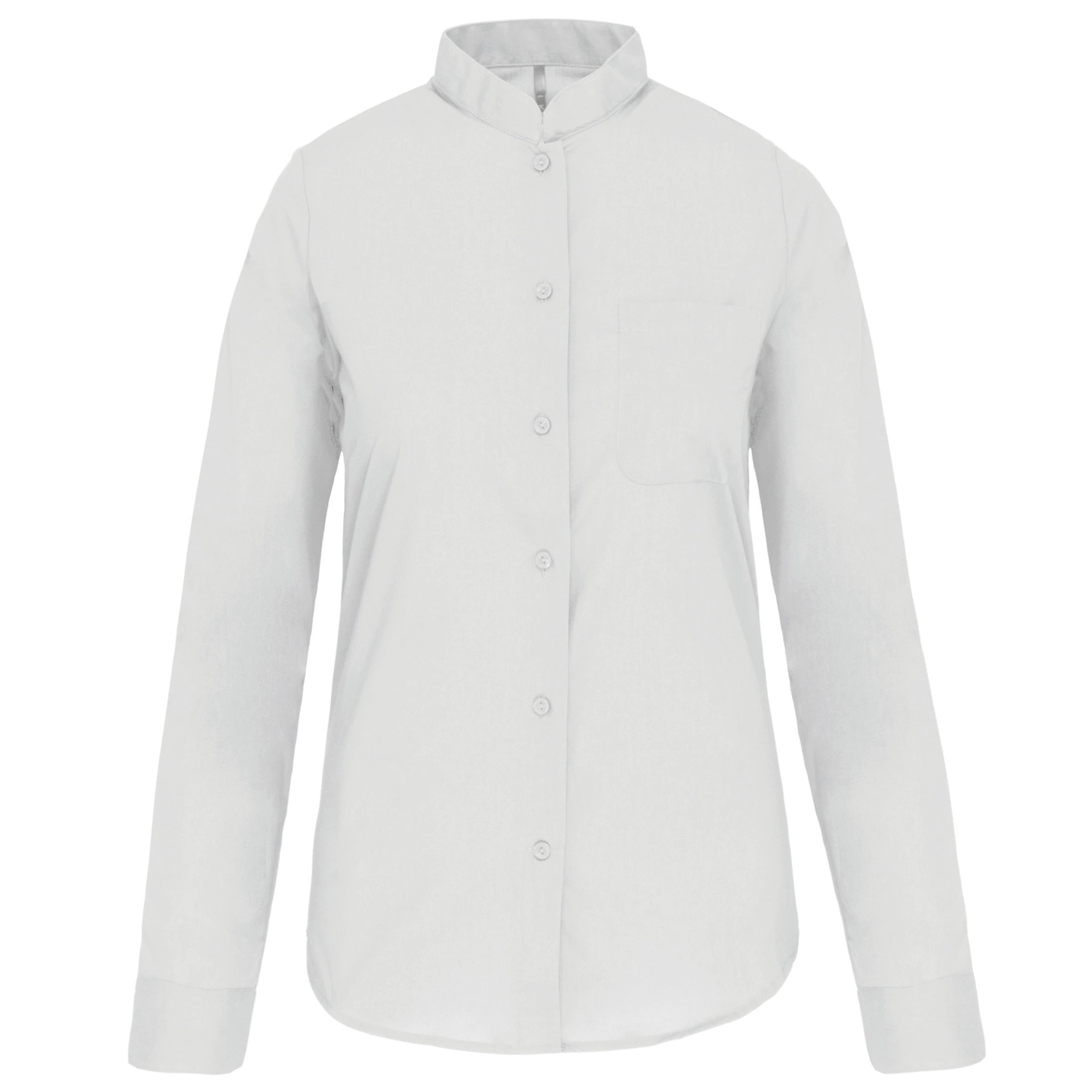 CAMISA DE SENHORA COM GOLA À PADRE MANGA COMPRIDA